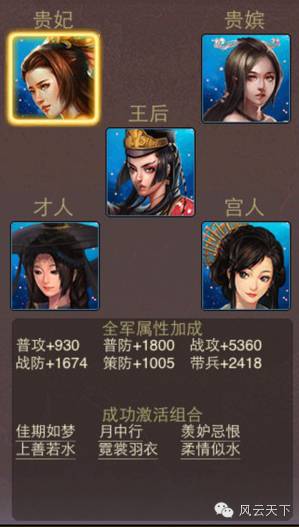 特点:推图最好的后宫,能有效降低群策和铁牛的伤害,加兵力也多,输出因为有2组战法攻击也比较可观。